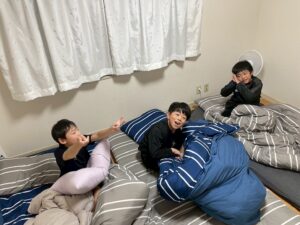 ミーティングも無事に終わり夜食を少しいただいて、みんなでお布団へ。