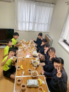 そしてお布団をみんなでひいて、身支度を済ませた後、キャプテン主導の元ミーティングを行いました。