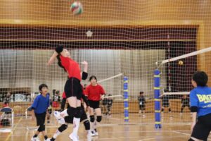 合同パスからのセットアップ、スパイク練習をしたり、サーブをしたり親睦も深まりました。